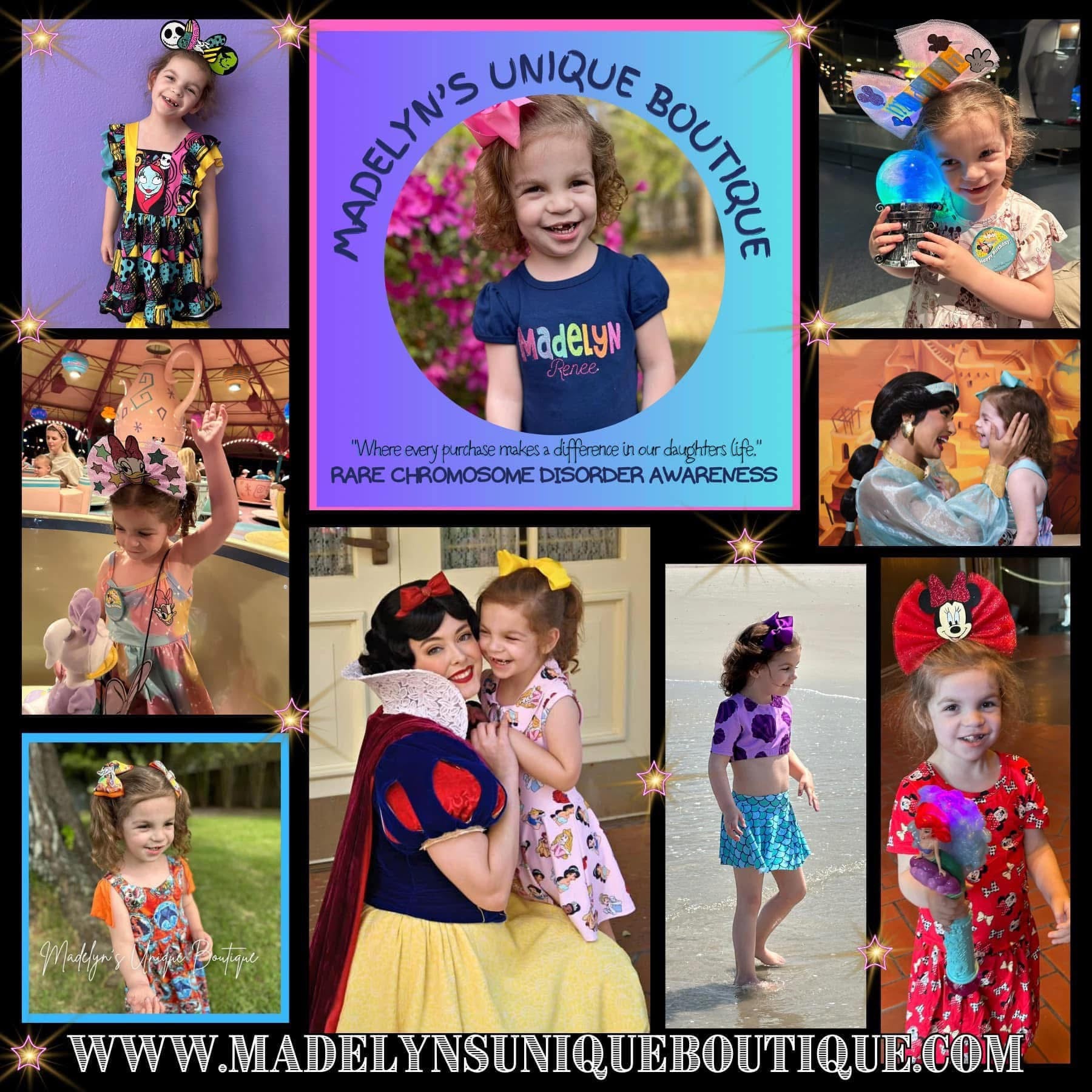 The reason our whole business started was to help raise awareness for our baby girl Madelyn. She was diagnosed with a RARE one of a kind Chromosome duplication disorder. She is the only documented case that anyone is aware of. She requires 24/7 care. She is completely non verbal and goes through about $600 in formula a month as she is unable to chew food. She is in 4 types of therapies, PT, ST, OT and feeding. She also sees many specialist. I left my job in the medical field once she was born to be her primary caregiver and I started this business to help with her care and to help our family financially. We love and appreciate all the support we can get. Our girl is beating so many odds each day. Shes 6, tiny but mighty. We hope youll love our brand and continue to support us for years to come!